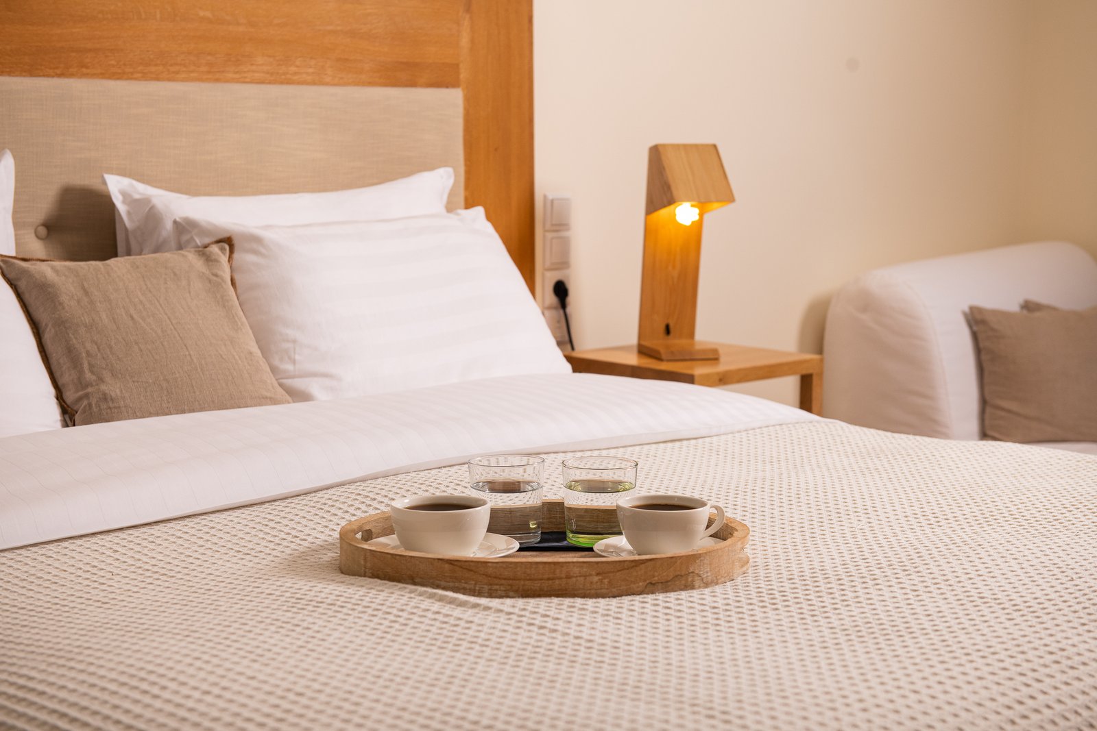Rooms are completely soundproof to ensure a good night’s rest. All mattresses, tapestries and linen are fire resistant, provided by Coco-Mat. There a wide variety of rooms and services at Natura Hotel Vytina.
