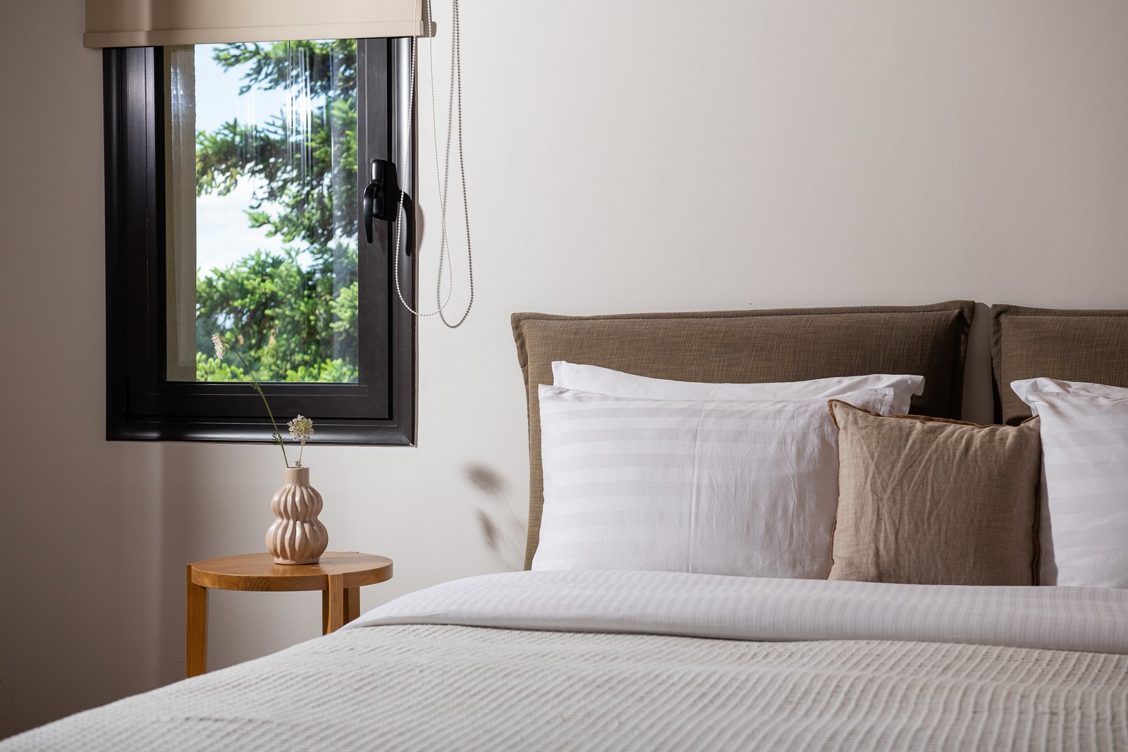 Each room at the Natura Hotel Vytina is uniquely designed with its own character and personality.